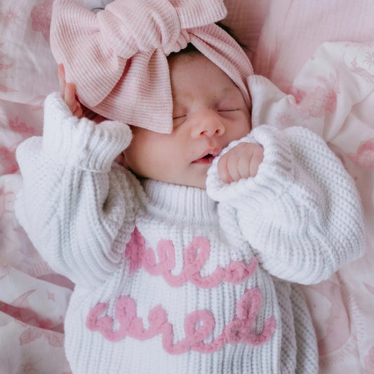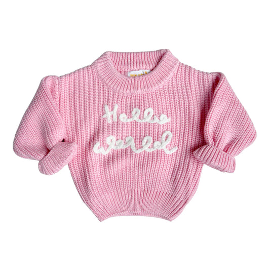 'Hello World' Chunky Knit Jumper - Baby Pink