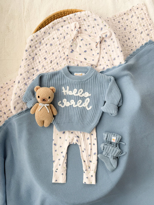 'Hello World' Chunky Knit Jumper - Blue