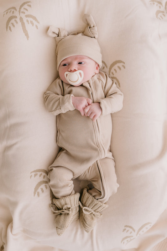 Knit Blanket - Palms Khaki & Cream