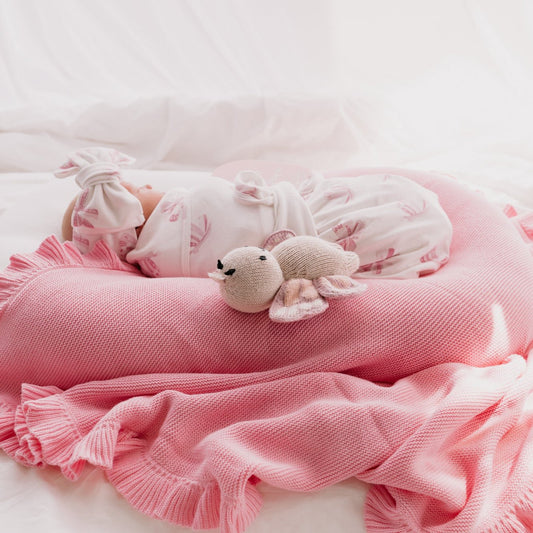 Muslin Organic Frill Blanket - White Bows
