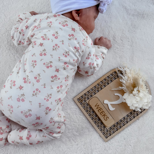 Wooden Rattan Look Name/Announcement Plaque w/ mini Posy