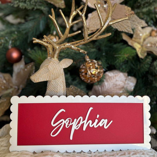 Scalloped First Christmas Plaque with Dried Flowers | Personalised