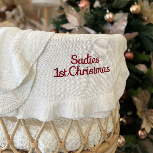 Frill Knit Blanket | Milk | First Christmas Embroidery