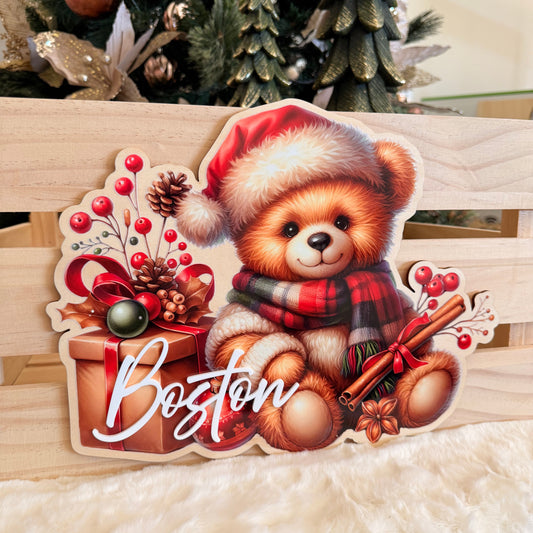 CHRISTMAS BEAR CRATE PLAQUE | Personalised