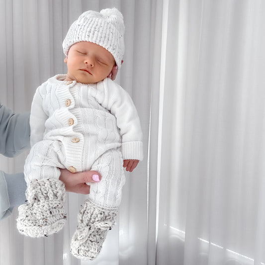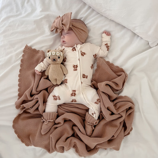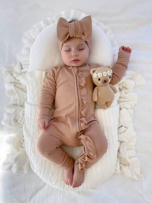 Frill Zip Romper - Teddy Colour Rib Pointelle