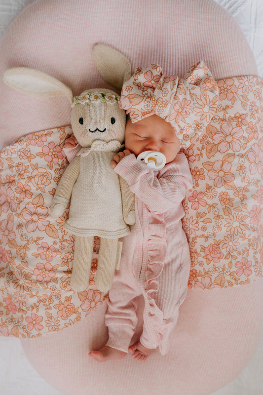 KNITTED OVERSIZED TOPKNOT | DAISY FLORAL STRAWBERRY
