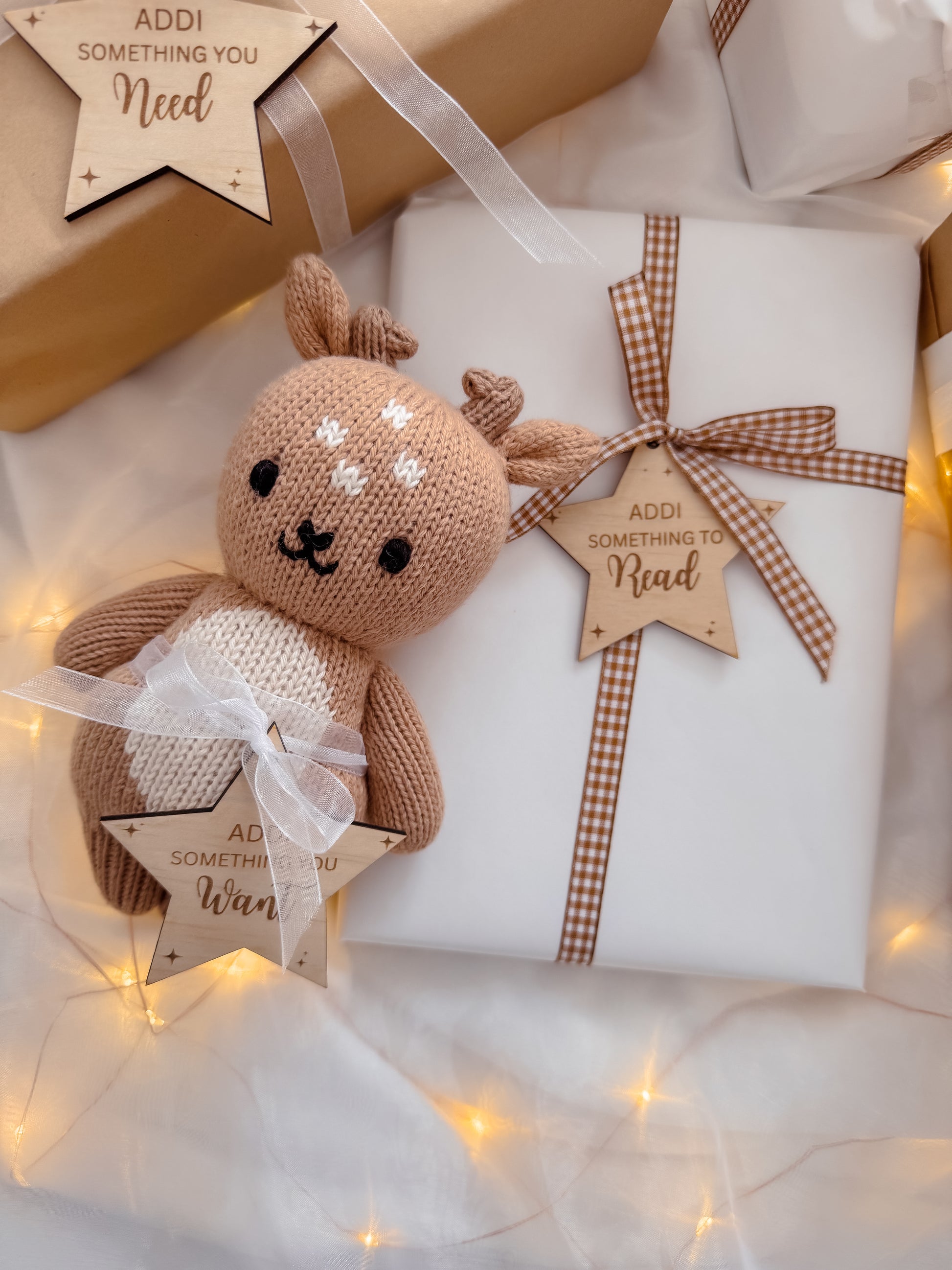 Make gift-giving extra special with Mindful Gifting Tags. This set of 5 personalized star-shaped tags adds a unique touch to your presents. Bring joy to your little ones this Christmas. (Santa and Mum & Dad-approved!)