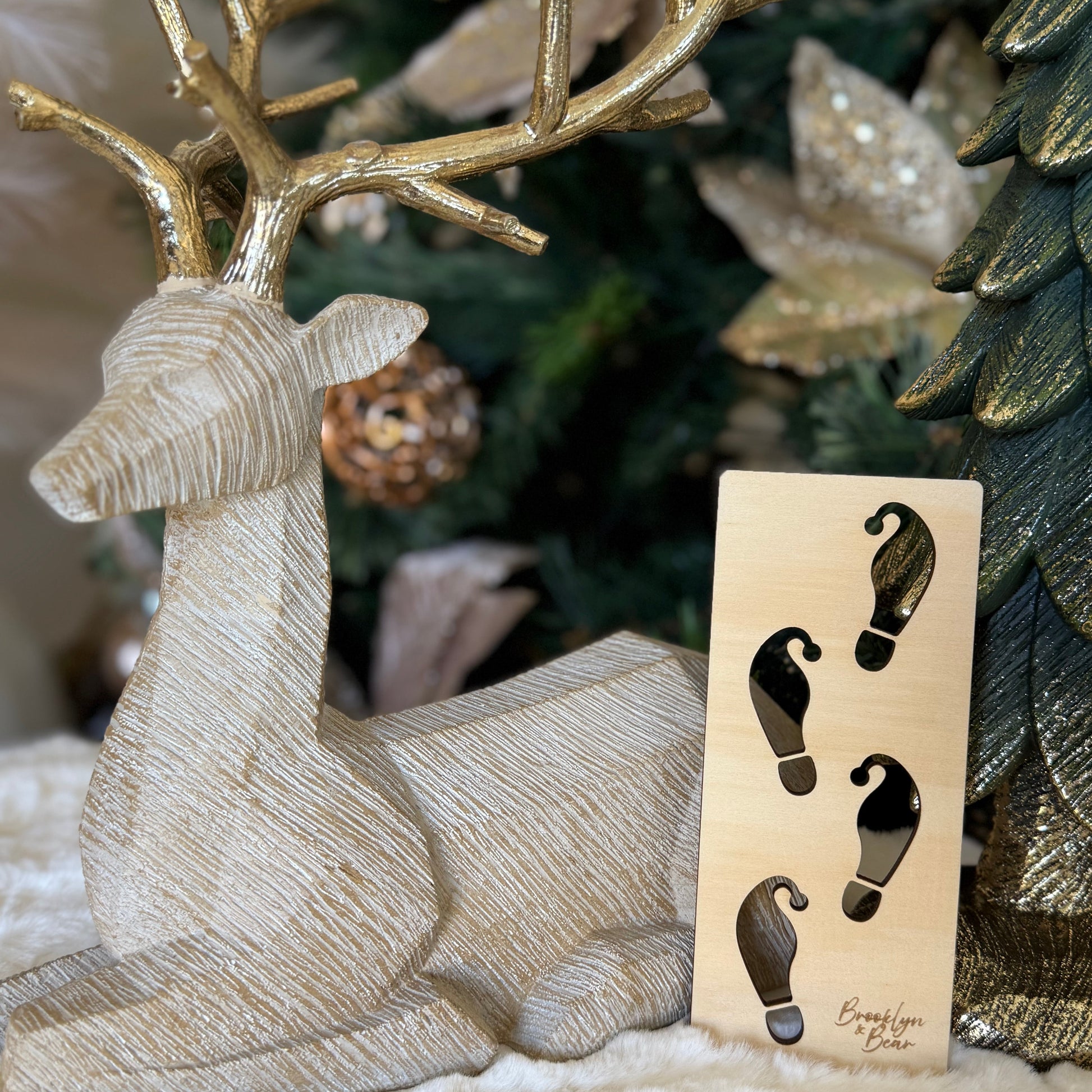 Sprinkle some flour or powder over these stencils to make the elfs footprints for your kids this Christmas Eve and many Christmases to come.
