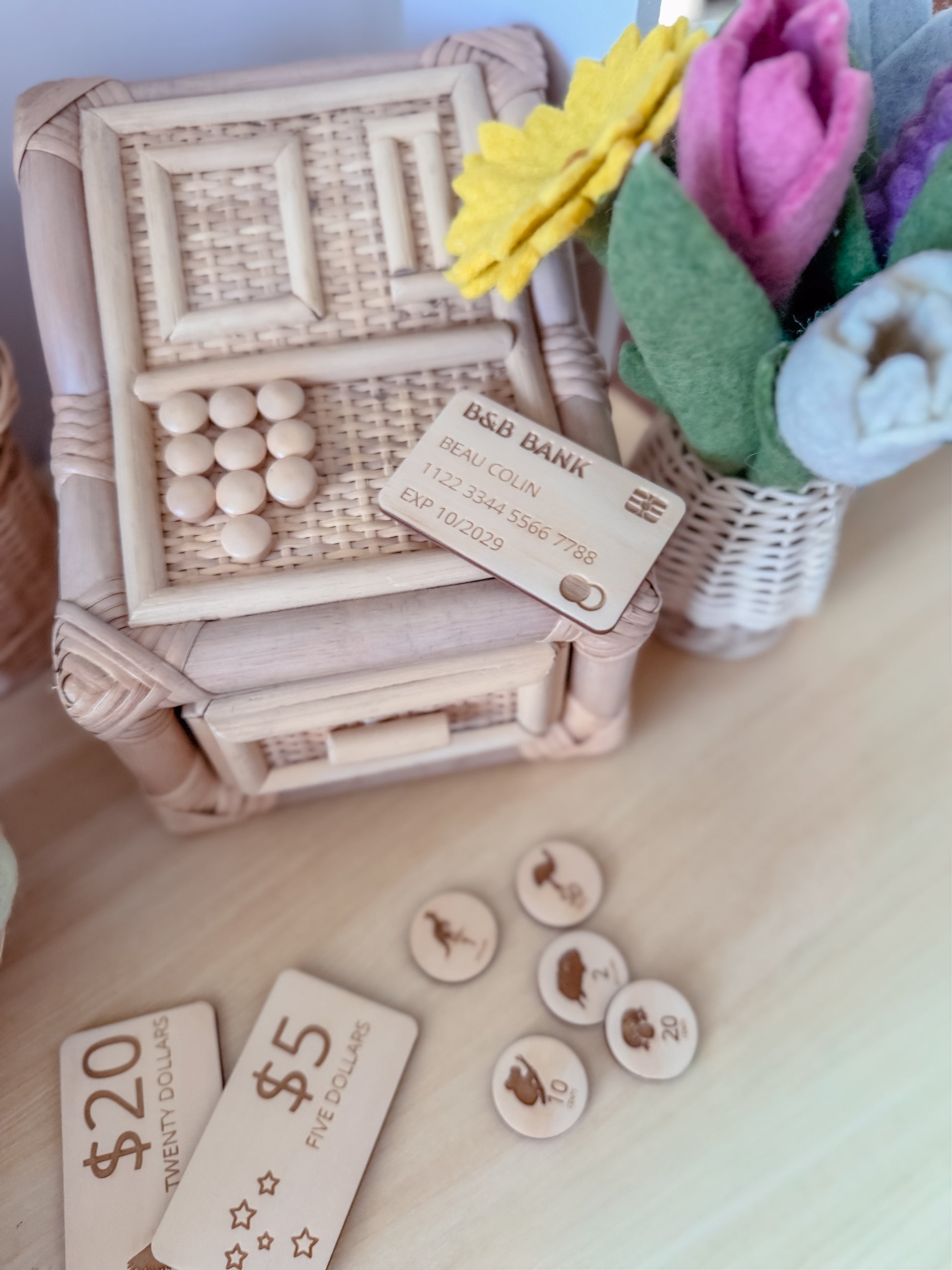 Wooden play money, perfect for imaginative play and endless fun. Numbers are all bold, making them easy for children to recognize and learn while they play.