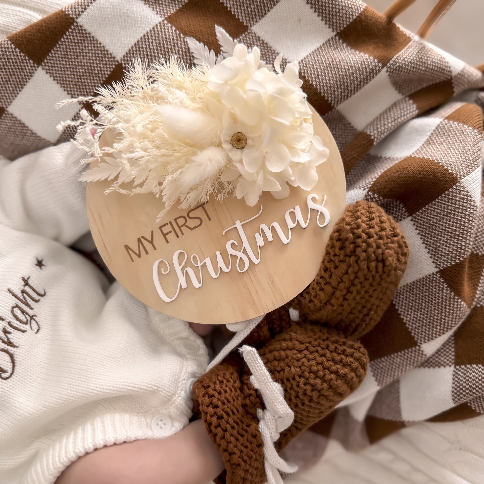 The cutest little keepsake disc for you little ones first Christmas, making a perfect photo prop. Personalize with their name or choose a Merry Christmas Plaque that can be used again and again!